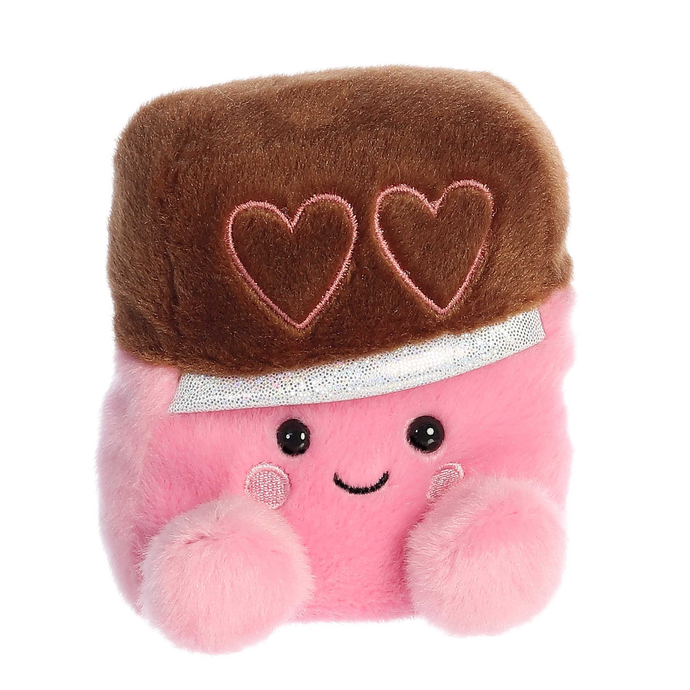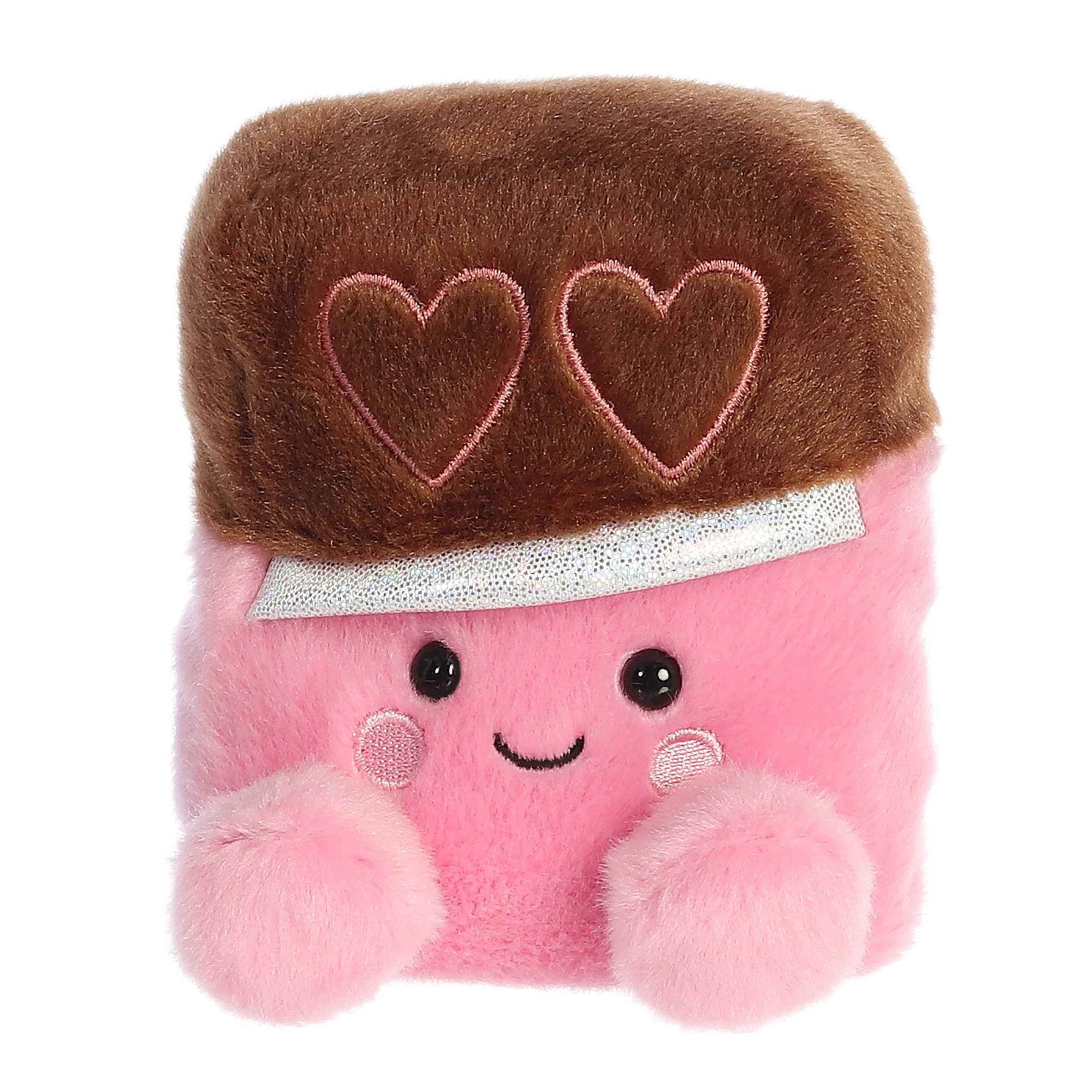 King Chocolate is a plush of regal charm, with a rich brown head resembling a chocolate block, a cute pink body, and embroidered hearts.