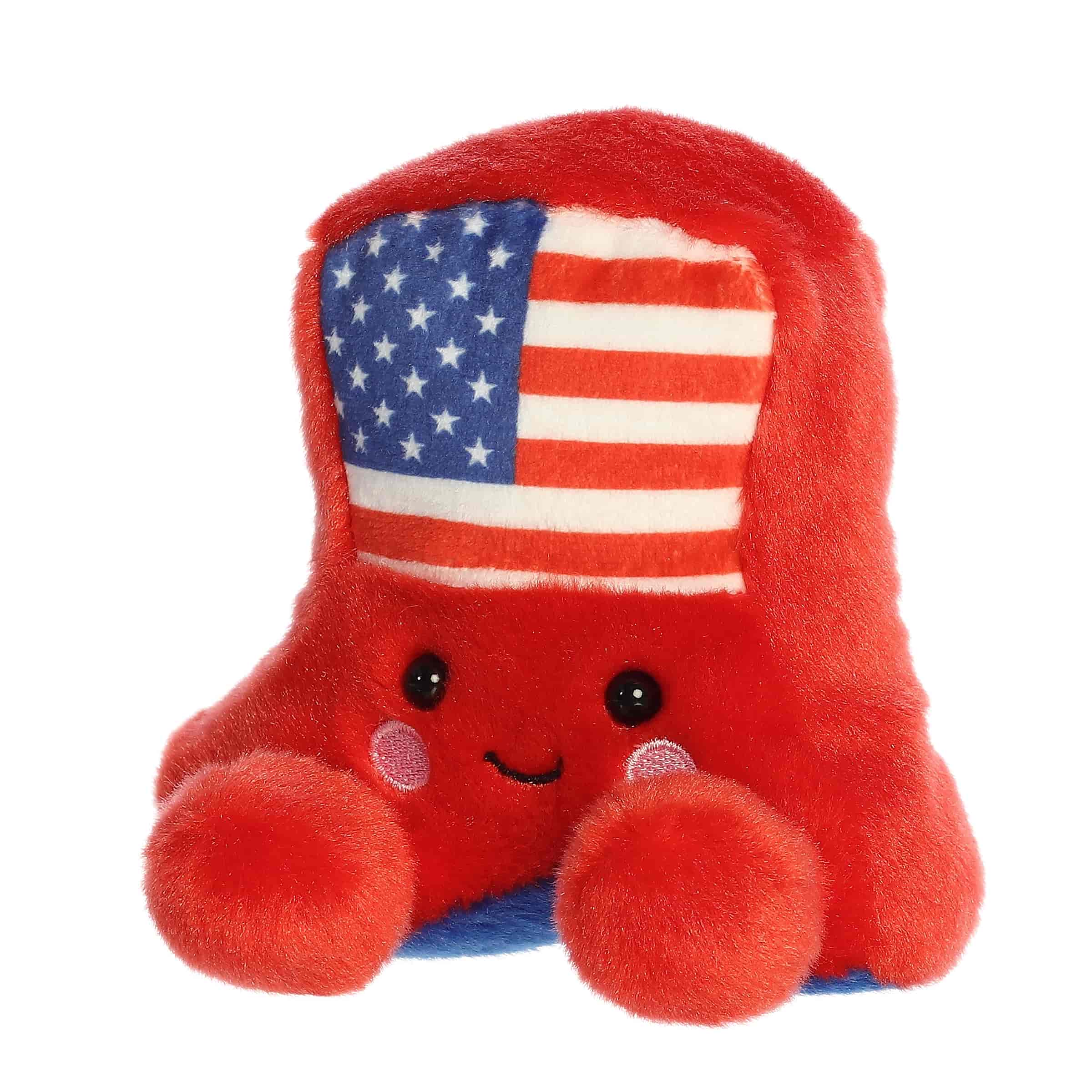 Stripes Cowboy Boot is a plush full of pride and power, decked out in bold red with a detailed American flag design across its side. Its rounded plush feet, soft fabric, and rosy cheeks give it a friendly, approachable charm, while its confident stance captures that unmistakable cowboy swagger and patriotic flair.